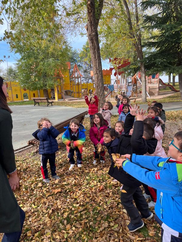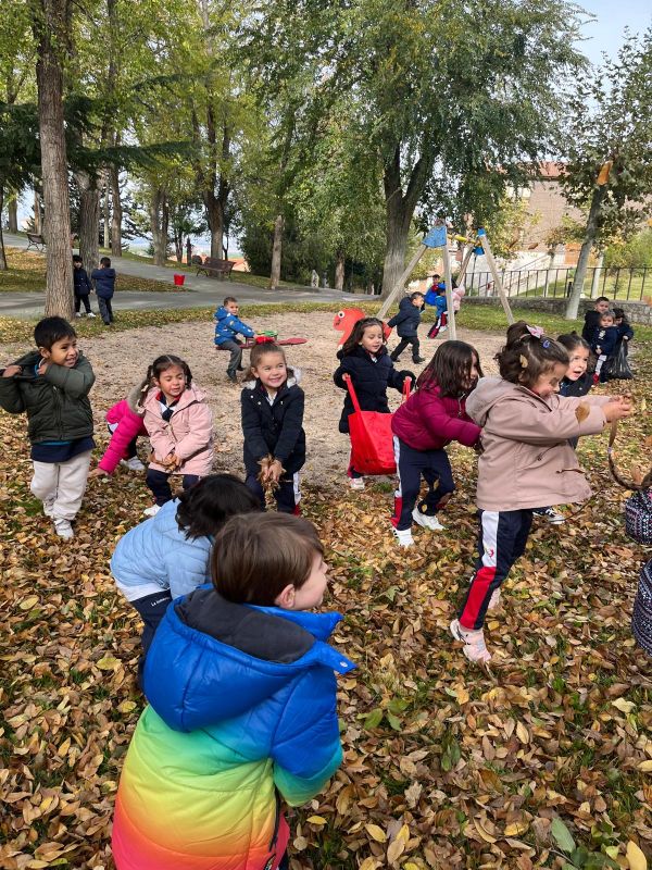 Nuestros alumnos de Infantil han pasado una mañana inolvidable en el parque de San Vicente. Aprovechando los rayos de sol otoñales, almorzaron y después recogieron hojas, viendo su textura, color, tamaño… Las alzaron al vuelo, las pisotearon para ver como crujían, experimentaron muchas sensaciones y vivieron el otoño in situ. Para finalizar esta bonita jornada jugaron en los columpios y corretearon entre las hojas. Se han llevado al cole las hojas recogidas para hacer diferentes manualidades.