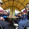 Para los alumnos de Educación Infantil hoy es un día especial, se levantaron temprano y con ganas de montarse en el autobús, para ir de excursión al Parque Temático del Mudéjar, en Olmedo. Emocionadas las familias e ilusionados los niños se despiden lanzándose un montón de besos. Es el inicio de un día de aventura para los alumnos y de un día de alegría e incertidumbre para los padres.