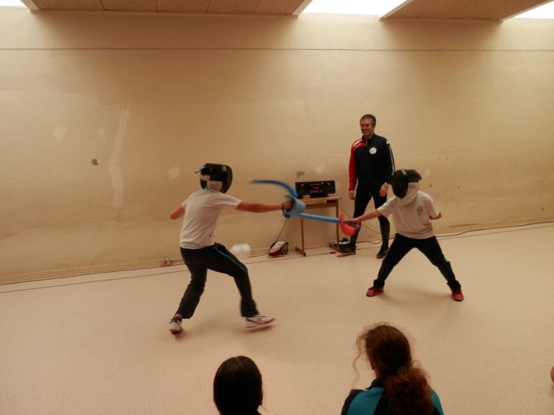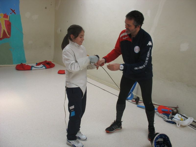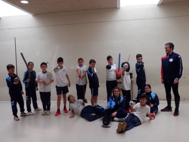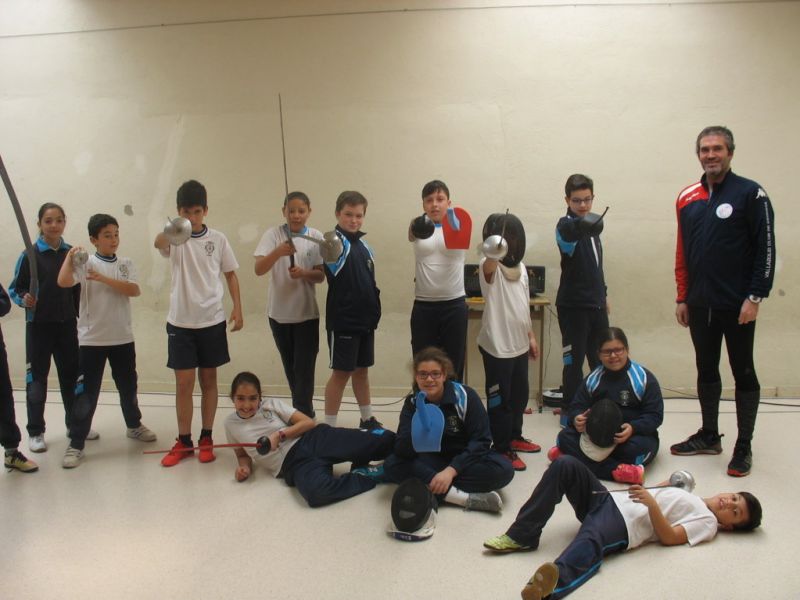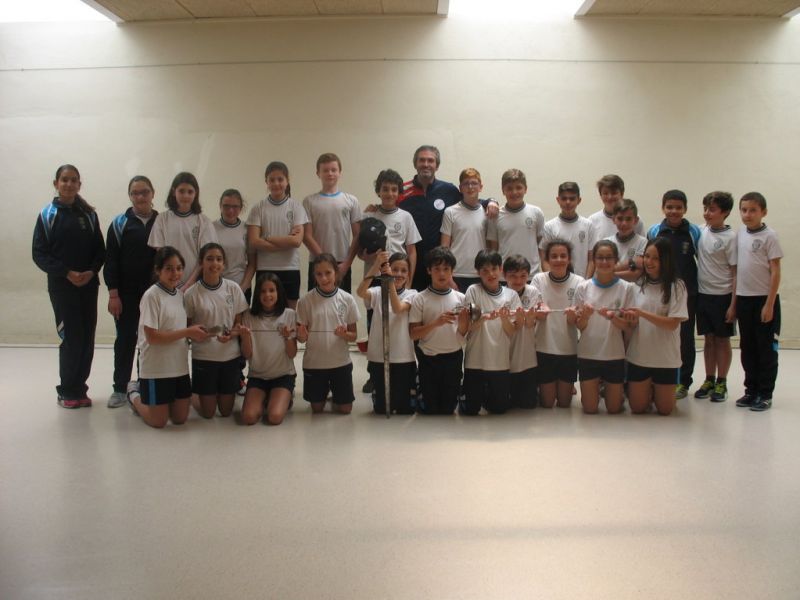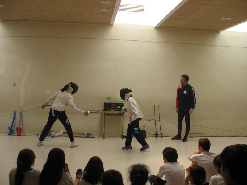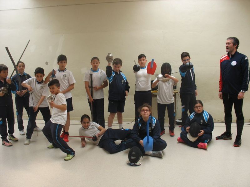 El día 19 fueron los de 5º y 6º con el esgrima, donde les contaron un poco la historia de los comienzos de este deporte, cómo fue cambiando, las reglas, la técnica e incluso la varidad y tipos de espadas. Les explicaron las poses, los desplazamientos y ataques, al igual que vieron los tres tipos de armas (el florete, la espada y el sable). Después pusieron en práctica lo aprendido.