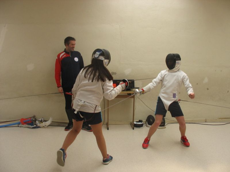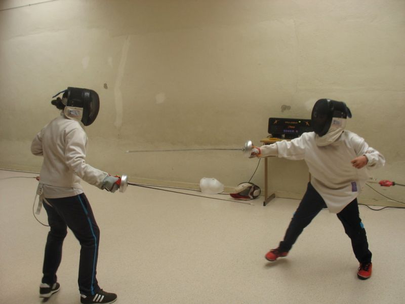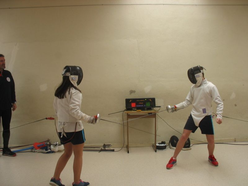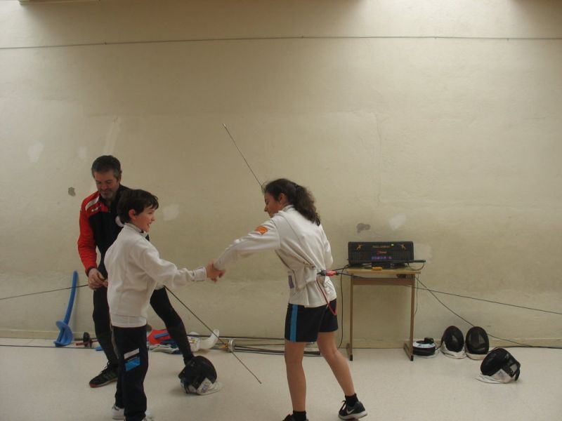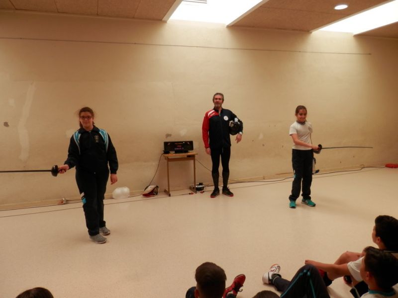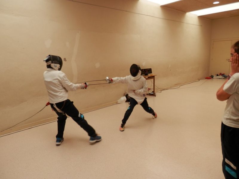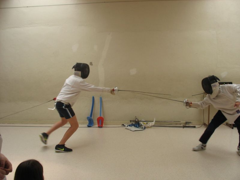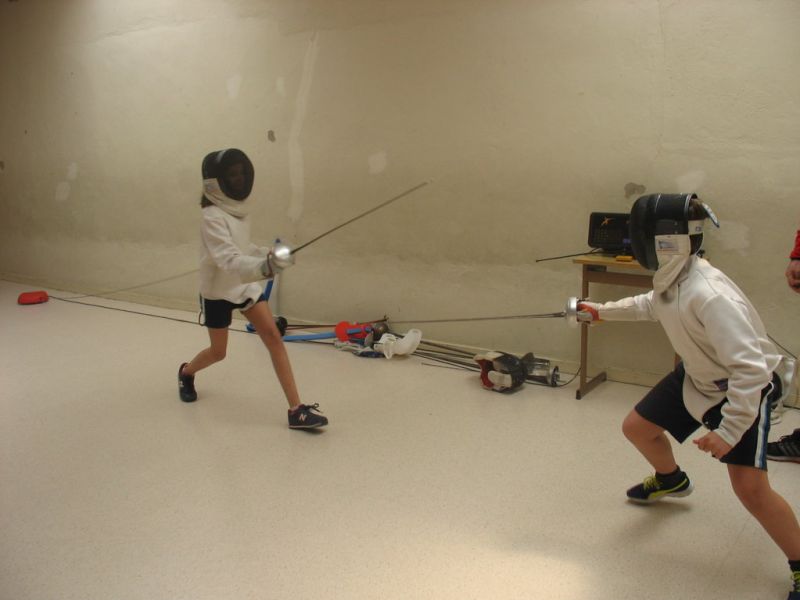 El día 19 fueron los de 5º y 6º con el esgrima, donde les contaron un poco la historia de los comienzos de este deporte, cómo fue cambiando, las reglas, la técnica e incluso la varidad y tipos de espadas. Les explicaron las poses, los desplazamientos y ataques, al igual que vieron los tres tipos de armas (el florete, la espada y el sable). Después pusieron en práctica lo aprendido.