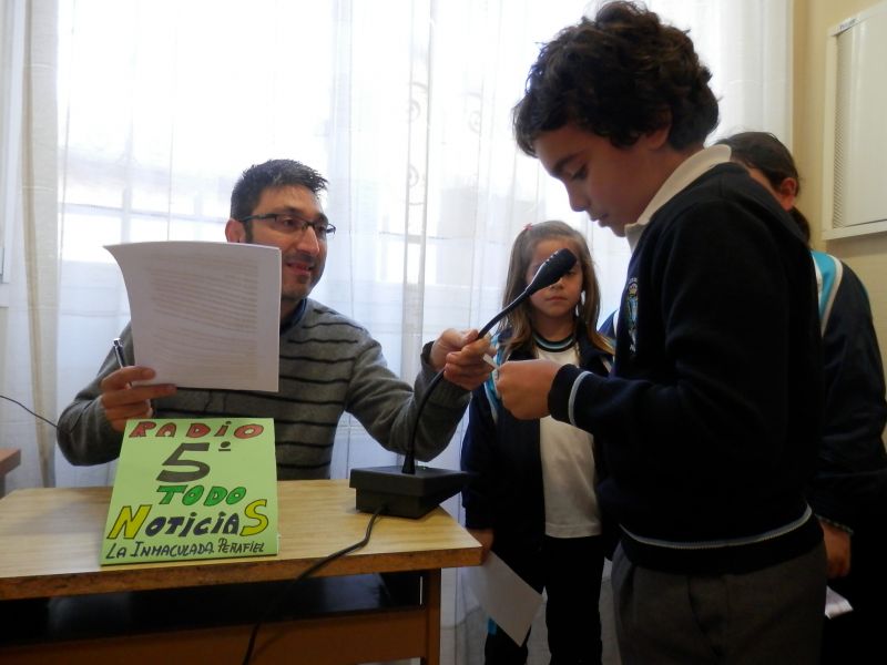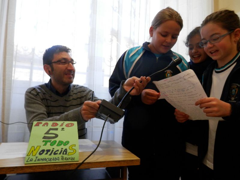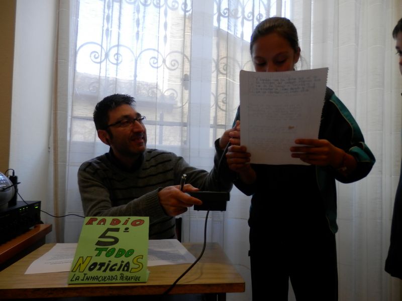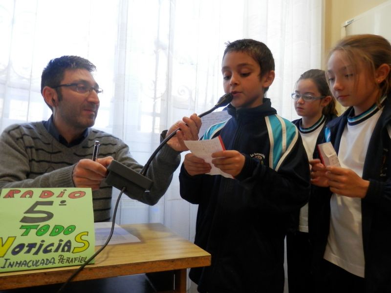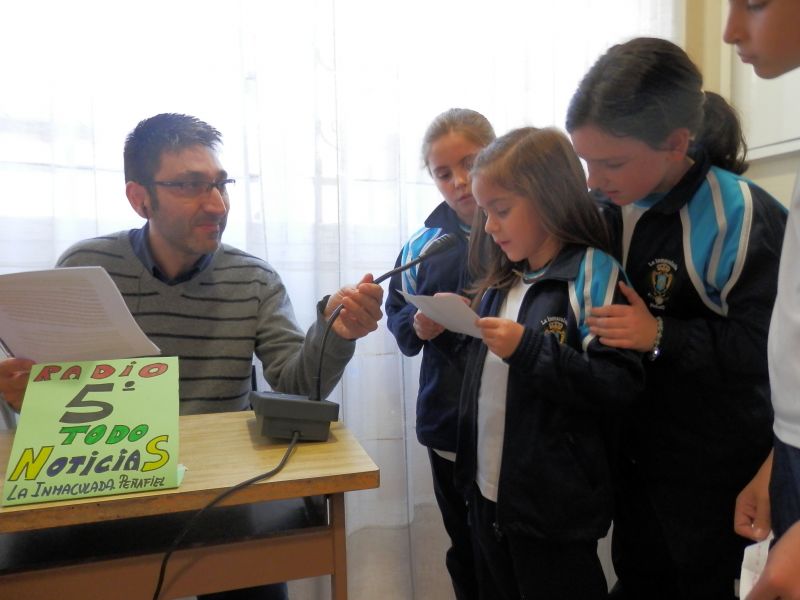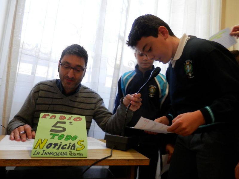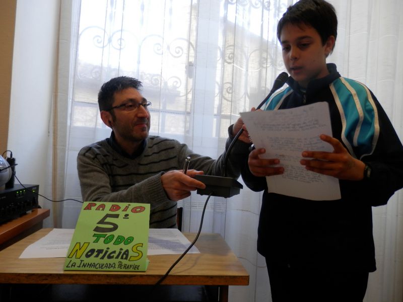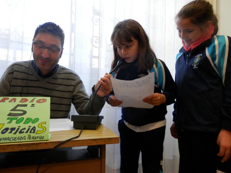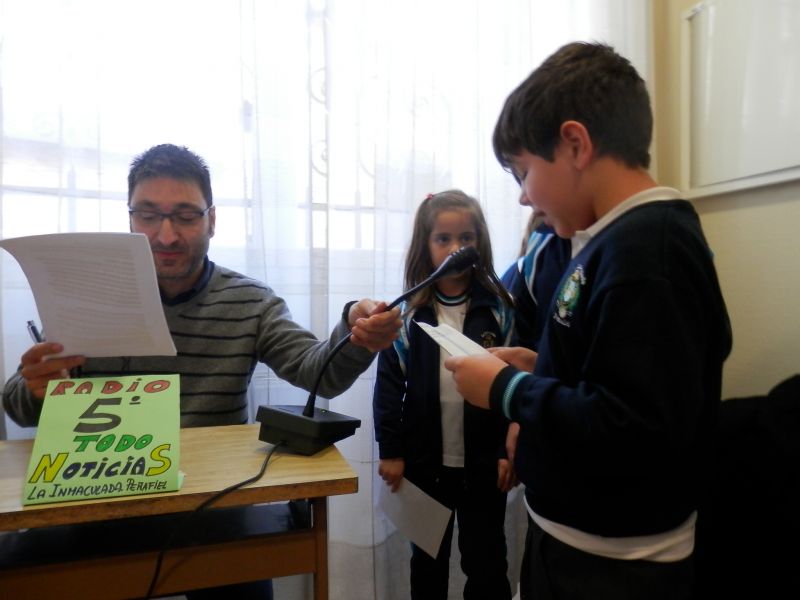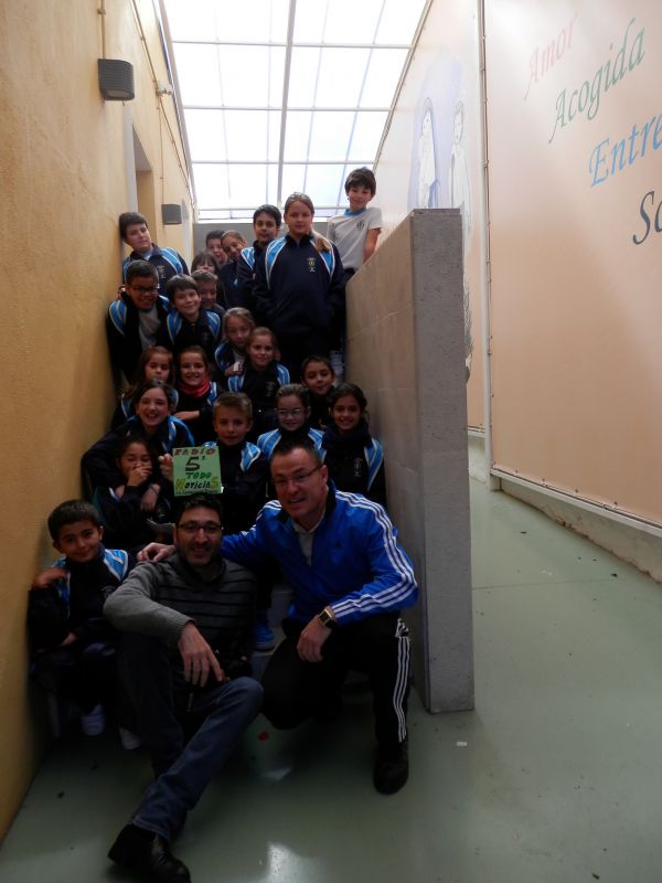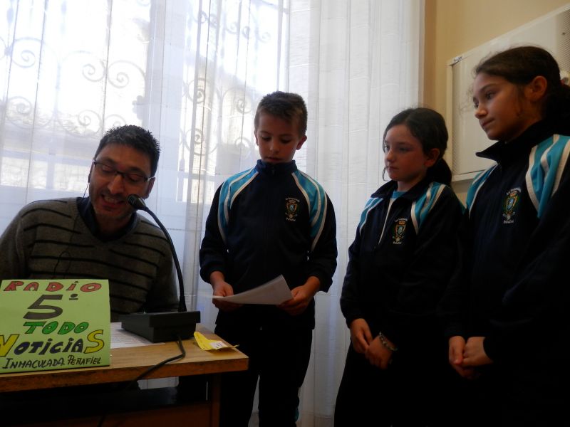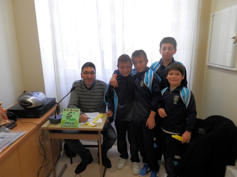 Los alumnos de 5º de primaria con el periodista local D. Agapito Ojosnegros realizaron una emisión en directo desde el programa “Radio quinto todo noticias”. Finalizaron así el mes en el que habían trabajado una de las inteligencias múlti