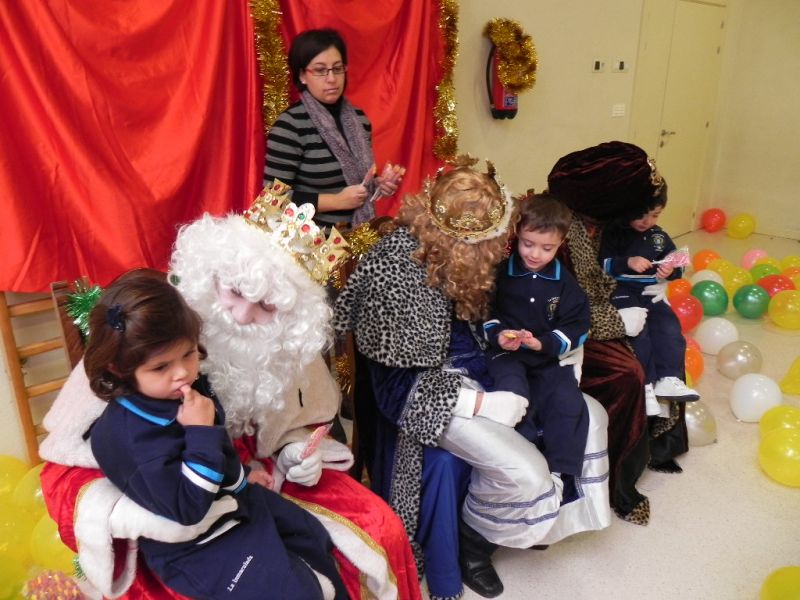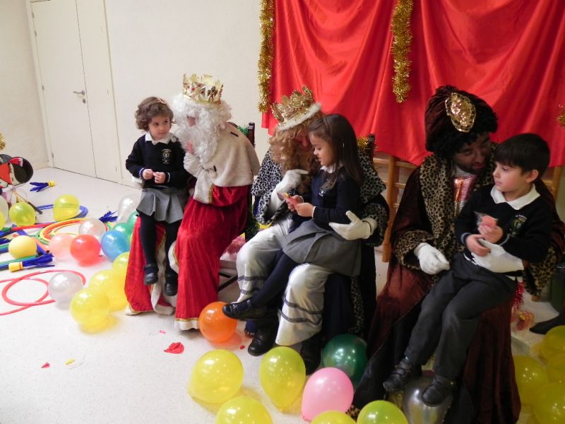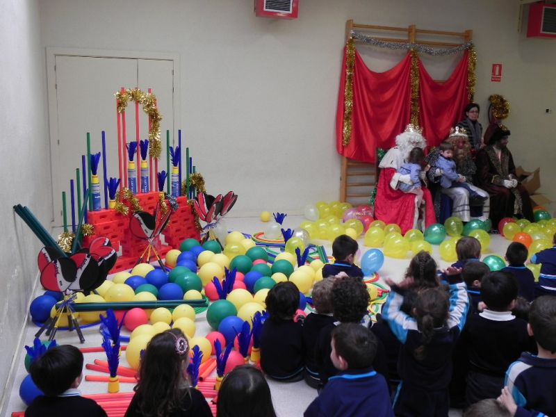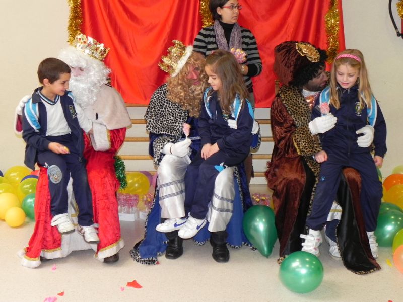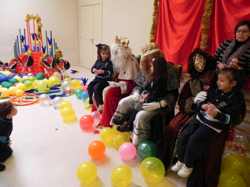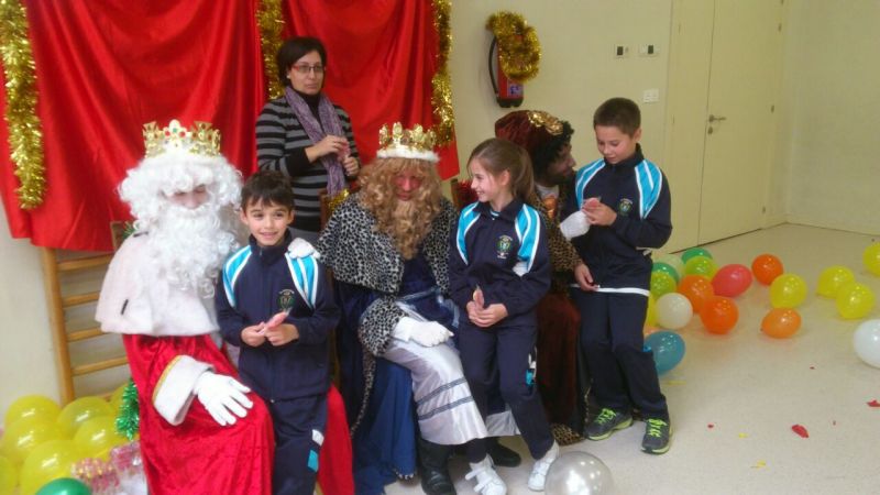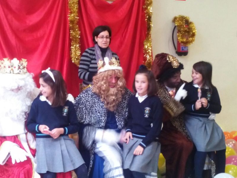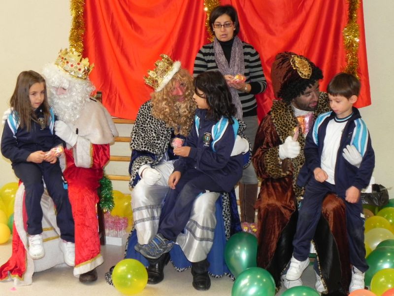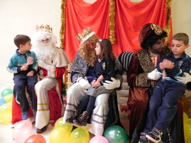 Un año más, el AMPA del colegio ha escrito a Sus Majestades los Reyes Magos de Oriente, pidiendo que visitaran nuestro colegio. Sus Majestades aceptaron la invitación y se hicieron presente en La Inmaculada. Los alumnos fueron al gimnasio, donde los Reyes hablaron con cada uno de ellos, de cómo había sido su comportamiento y de los juguetes que les pedían, a la vez que les regalaban un detalle que a pequeños y grandes agradó. Después los Reyes dieron a los alumnos y profesores del centro una gran sorpresa: sus camellos habían venido cargados de material deportivo, picas, aros, peonzas, balones, raquetas, indiacas y muchas cosas más.