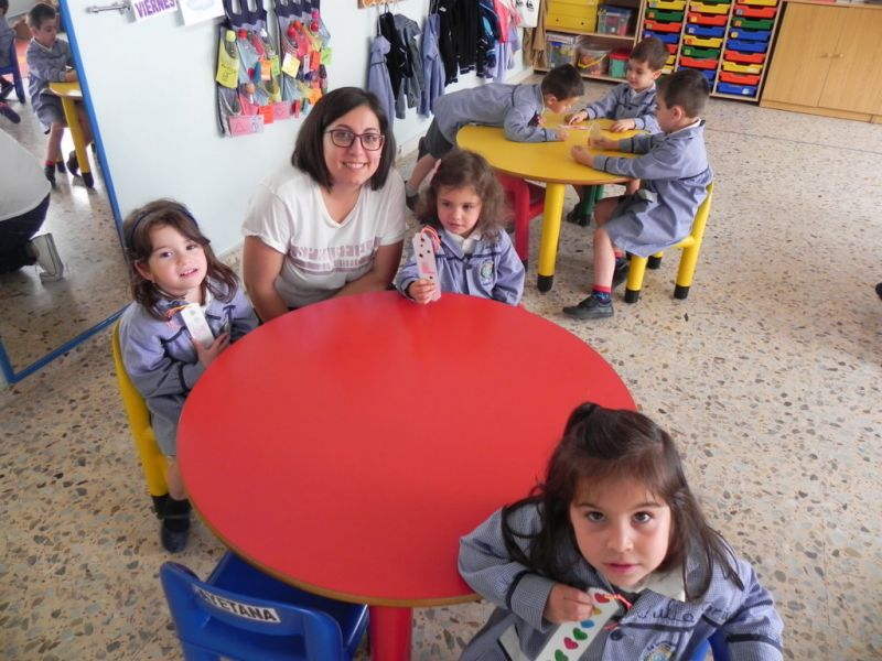 Hoy, como despedida de las actividades en clase, los niños/as de 1º de E. Infantil han tenido un taller donde han aprendido a hacer un marcapáginas . Guiados por una mamá ha sido muy fácil y divertido.