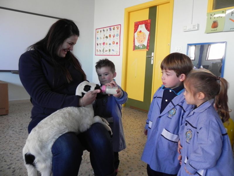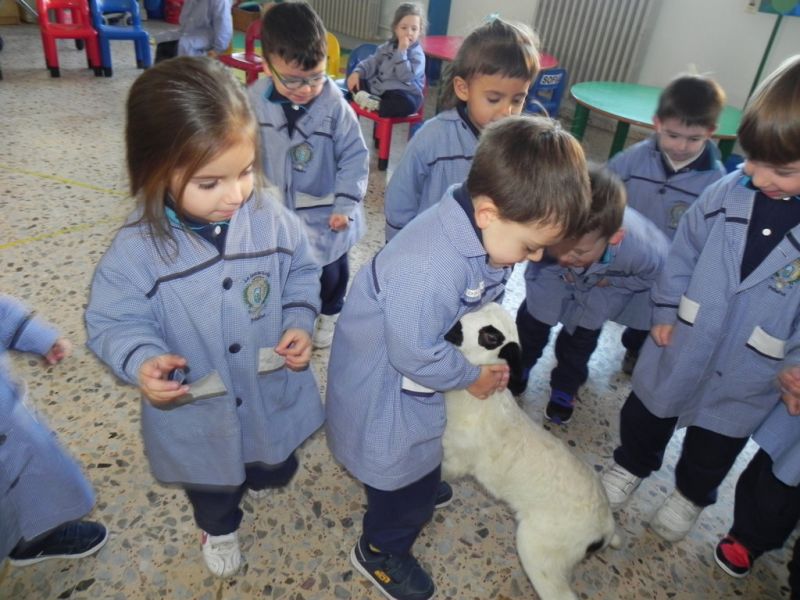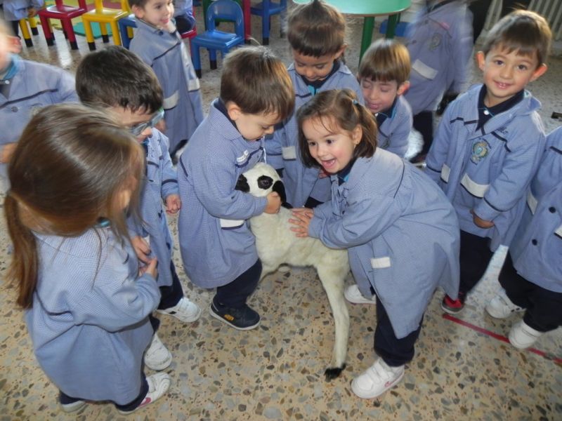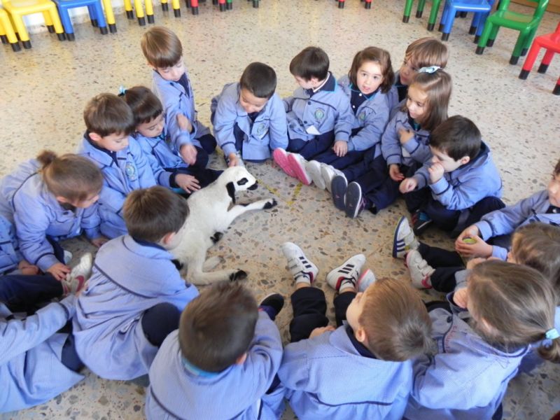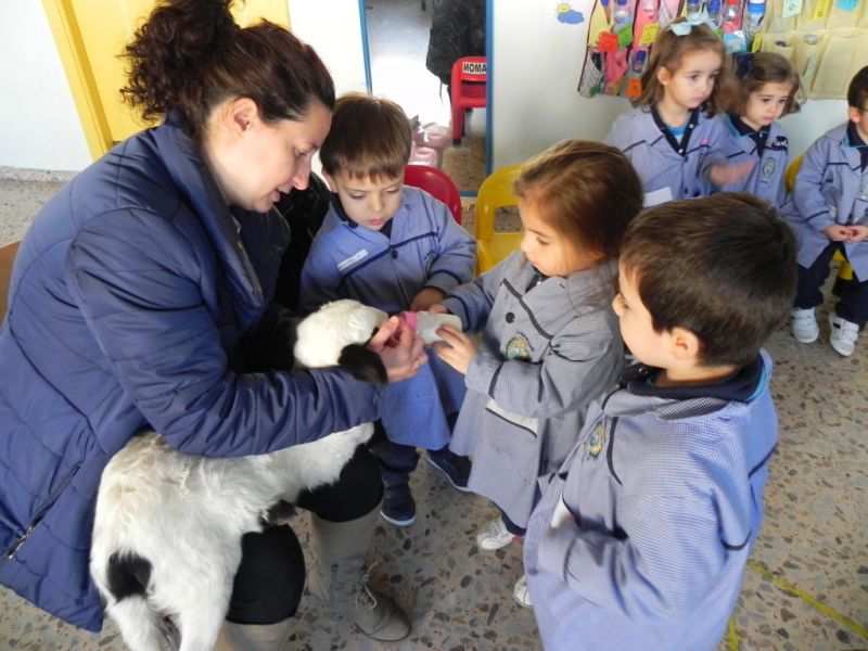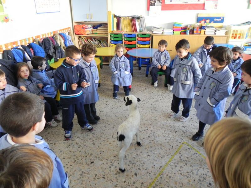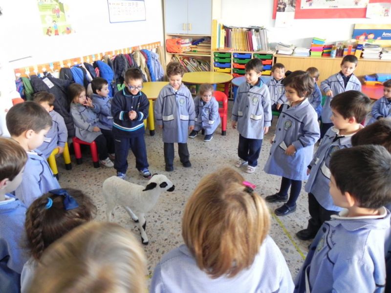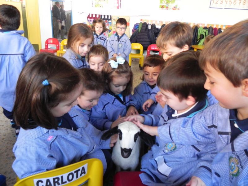 Los alumnos de E. Infantil recibieron una visita muy especial, un pequeño corderito, suave, tierno y muy juguetón que hizo de ésta mañana fría de noviembre, algo más calentita y divertida. Aprendieron lo importante que es el cuidado de los animales domésticos y todos los alimentos que nos proporcionan. Le pudieron dar el biberón con mucho cariño y cuidado, le cogieron, tocaron y todos se le querían llevar a su casa.