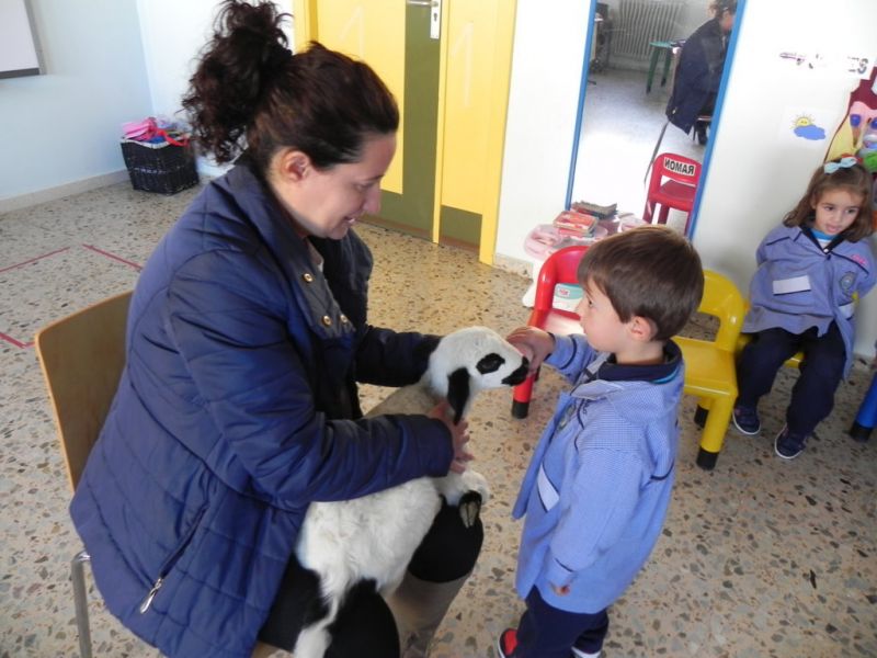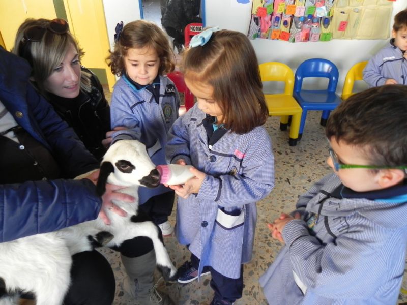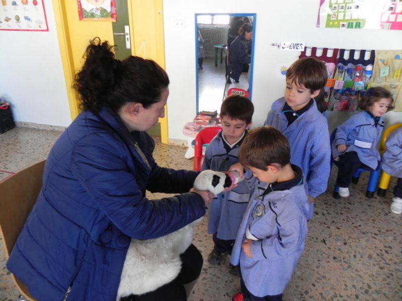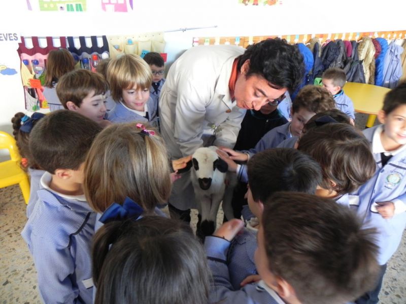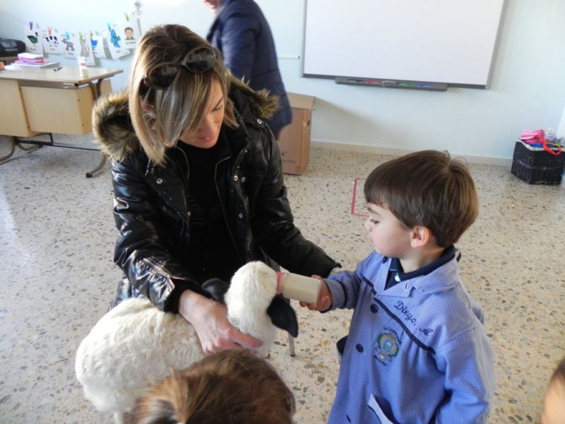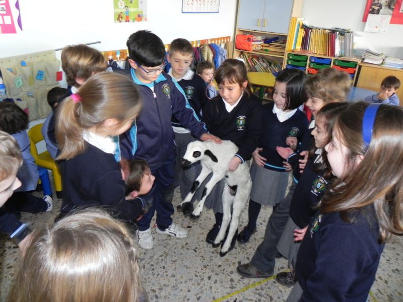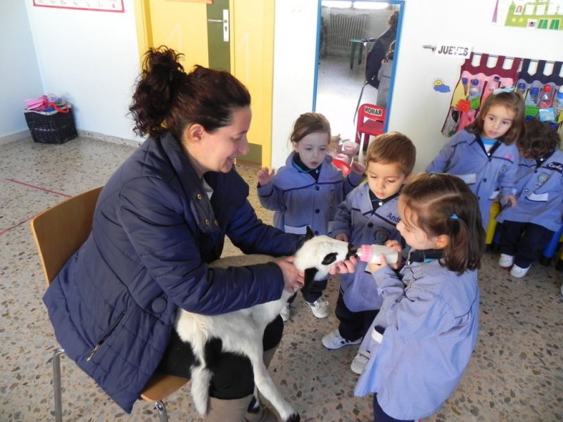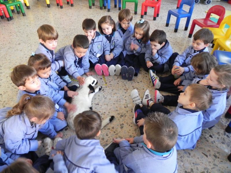 Los alumnos de E. Infantil recibieron una visita muy especial, un pequeño corderito, suave, tierno y muy juguetón que hizo de ésta mañana fría de noviembre, algo más calentita y divertida. Aprendieron lo importante que es el cuidado de los animales domésticos y todos los alimentos que nos proporcionan. Le pudieron dar el biberón con mucho cariño y cuidado, le cogieron, tocaron y todos se le querían llevar a su casa.