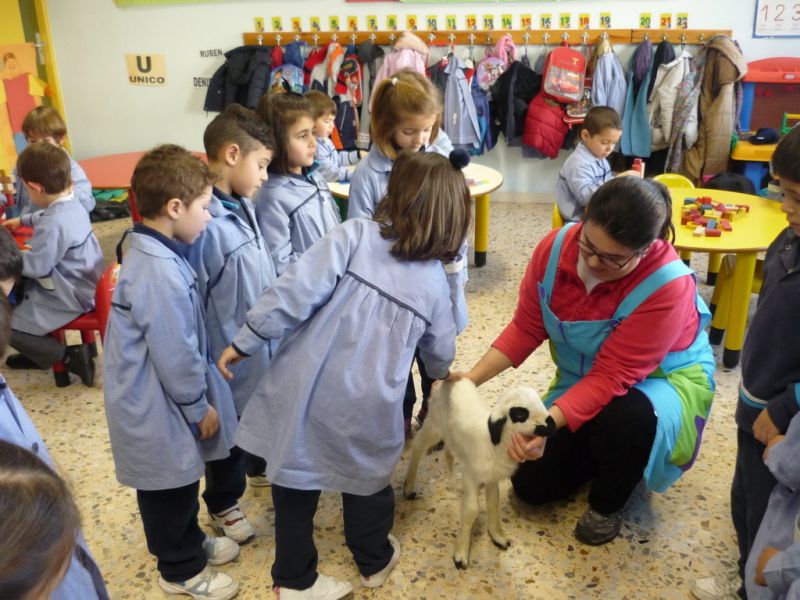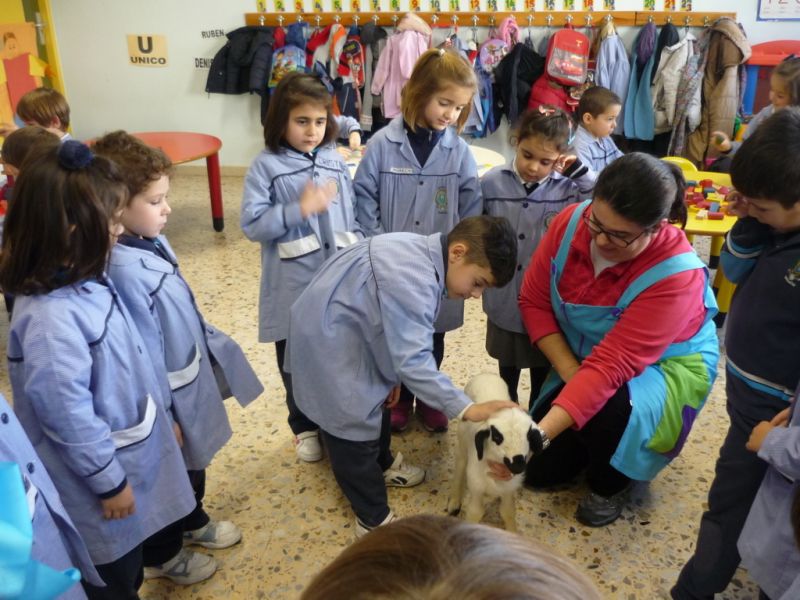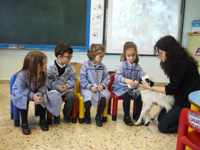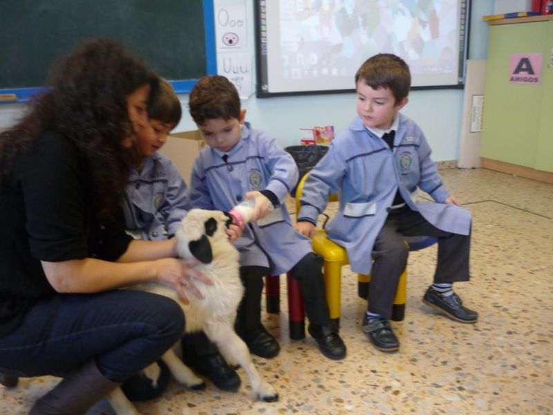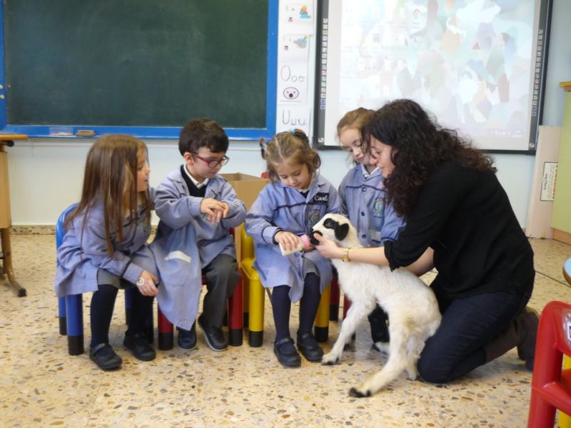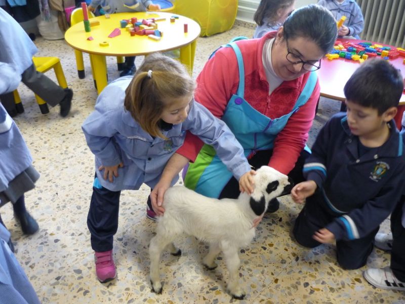 ¡Qué sorpresa! Cuando íbamos a empezar a contar el cuento en Infantil hemos tenido la visita de un precioso corderito. ¡Qué bonito y qué suave! A los niños les ha encantado darle su biberón, hemos aprovechado para contar cuentos y hablar de sus características. Todos hemos disfrutado un montón.