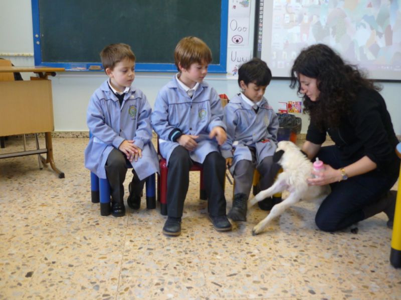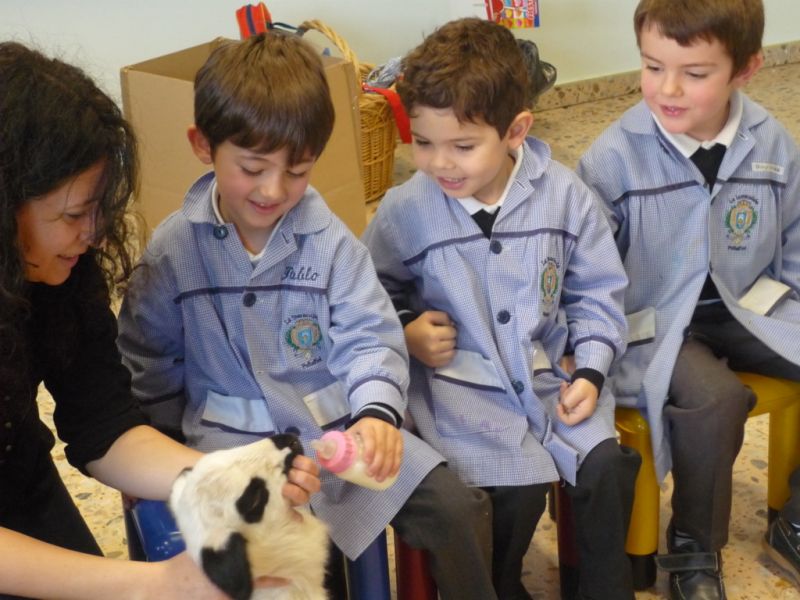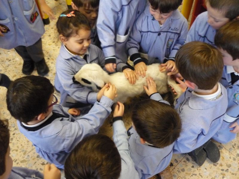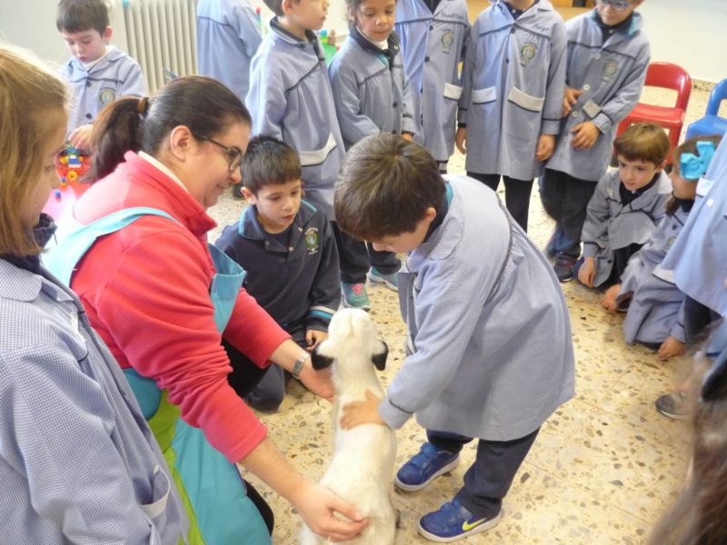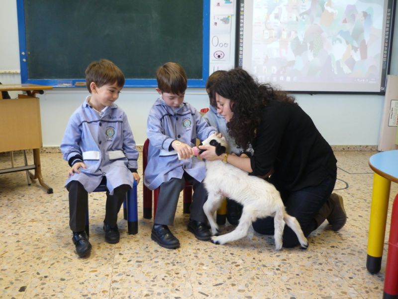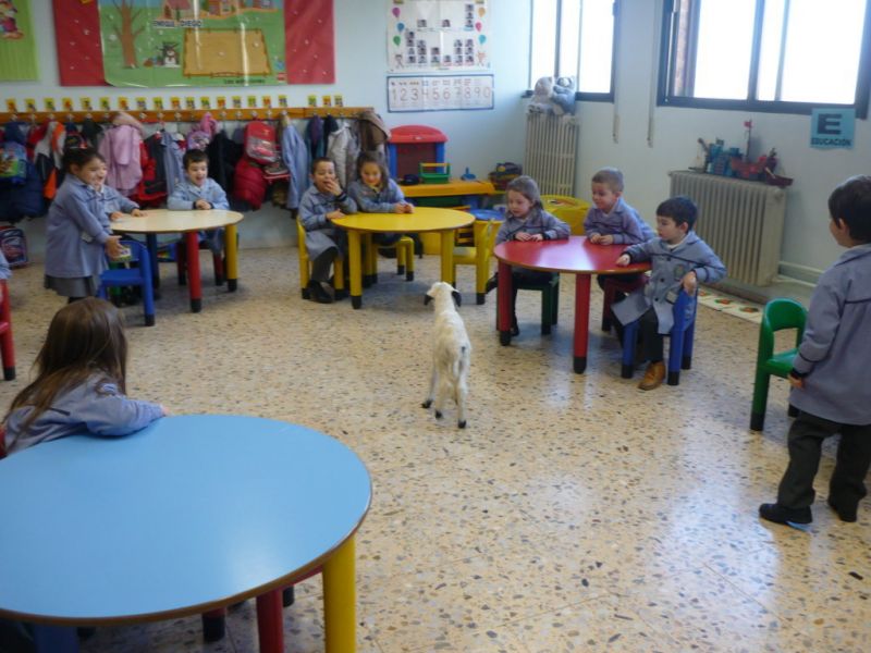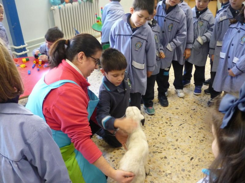 ¡Qué sorpresa! Cuando íbamos a empezar a contar el cuento en Infantil hemos tenido la visita de un precioso corderito. ¡Qué bonito y qué suave! A los niños les ha encantado darle su biberón, hemos aprovechado para contar cuentos y hablar de sus características. Todos hemos disfrutado un montón.