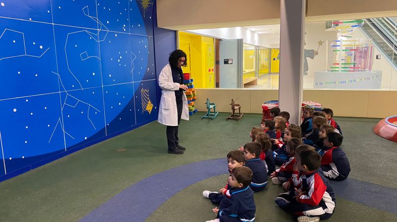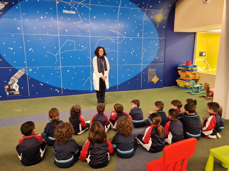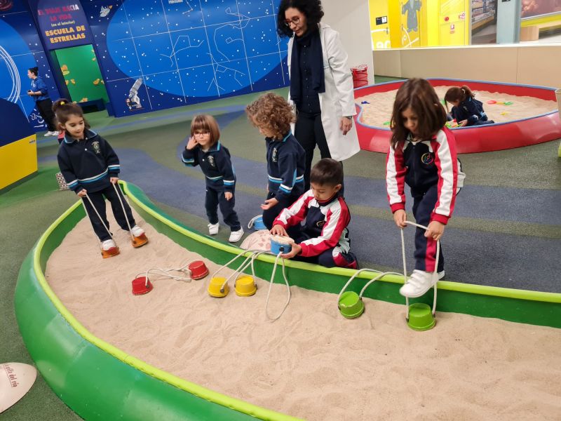 Los alumnos de Infantil van hoy de excursión, para muchos de ellos es la primera vez que montan en autobús. Están contentos, nerviosos e ilusionados por todo lo que van a vivir con sus compañeros y profesoras. Su primera parada la tienen en el Museo de la Ciencia, donde podrán experimentar y manipular con actividades de equilibrio, de gravedad, de astronomía, etc. Después visitarán la Casa del Río donde les enseñarán los ecosistemas fluviales del río Pisuerga. Podrán observar y tocar las principales especies de peces, anfibios, reptiles y crustáceos que habitan en las aguas y ribera del Pisuerga. Para finalizar la visita en el Museo de la Ciencia verán una proyección en el Planetario.