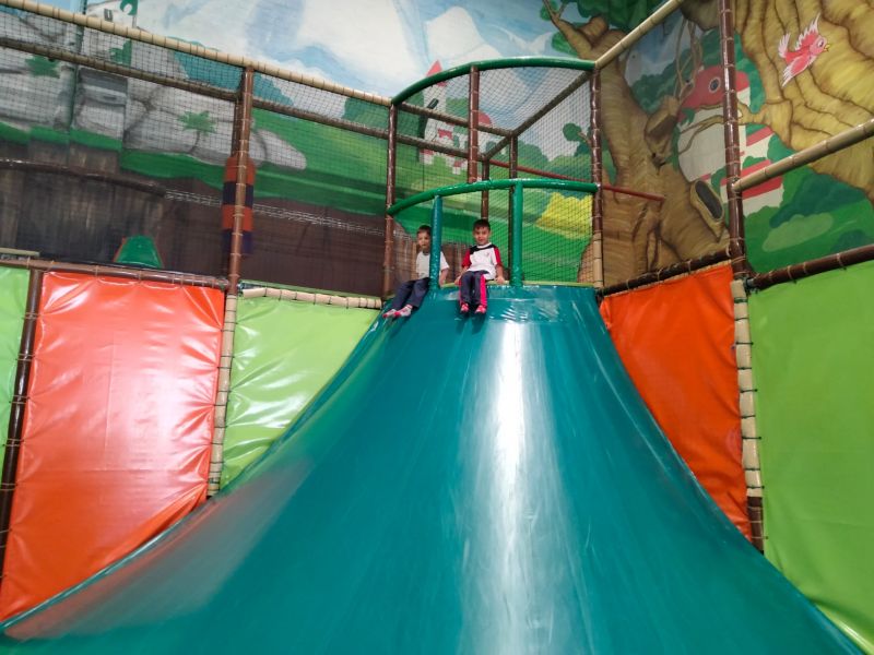 Después de una mañana tan interesante y científica, se dirigen hacia el Dragon Vall para comer y jugar, donde la diversión está más que asegurada, con las piscinas de bolas, toboganes, balancines, etc.