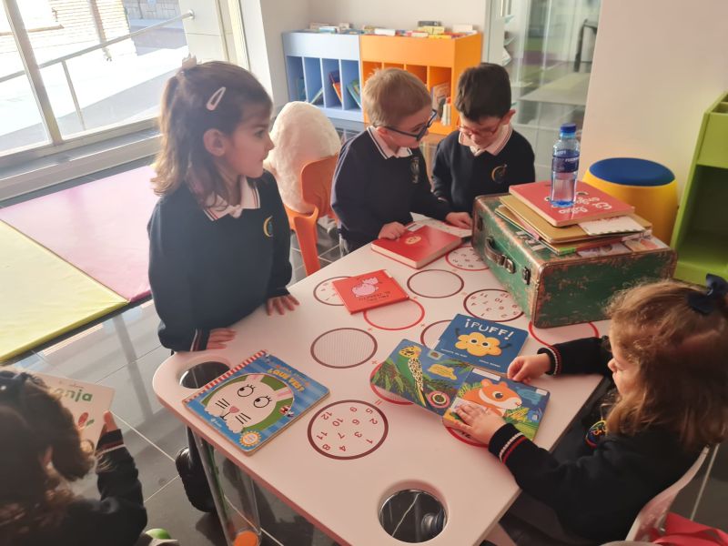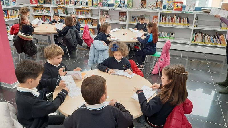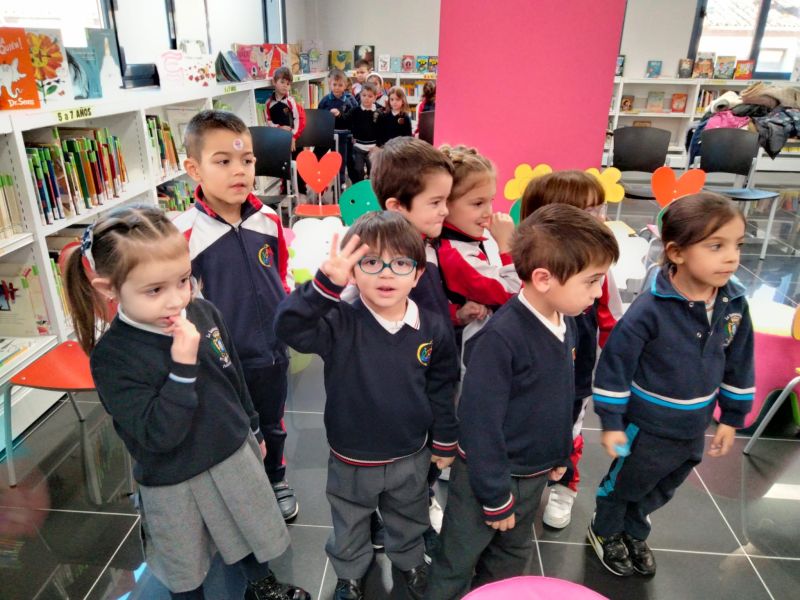 A lo largo de la semana todos los alumnos del cole han pasado por la Biblioteca Municipal para enseñarnos y disfrutar con un montón de actividades. Pili, Judith, Mª Eugenia, Daniela e Inés nos lo han hecho pasar genial, desde vivir aventuras fascinantes, a convertirnos en detectives, hacer talleres, etc. Hemos podido comprobar in situ lo grande que es, todas las salas que tiene y todo el material con el que cuenta nuestra estupenda biblioteca.